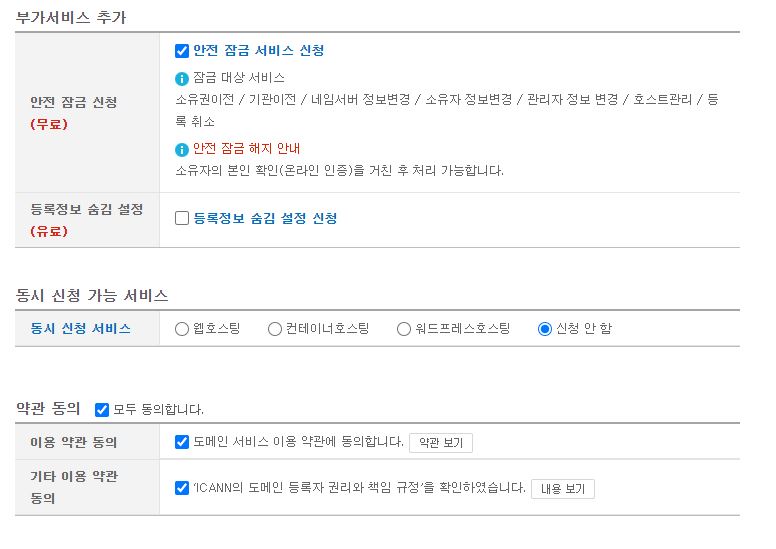 (2) 동시 신청 서비스 : 각각의 서비스에 비용이 추가로 들고 웹호스핑이 제일 저렴합니다.