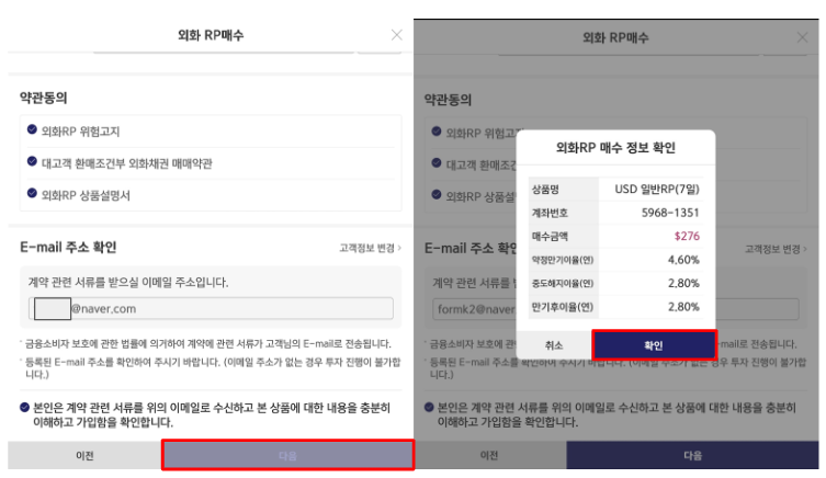 ④ 외화 RP 매수 정보 확인을 누르면 완료됩니다.