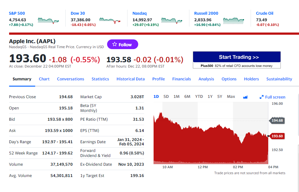 야후 파이낸스 (https://finance.yahoo.com)