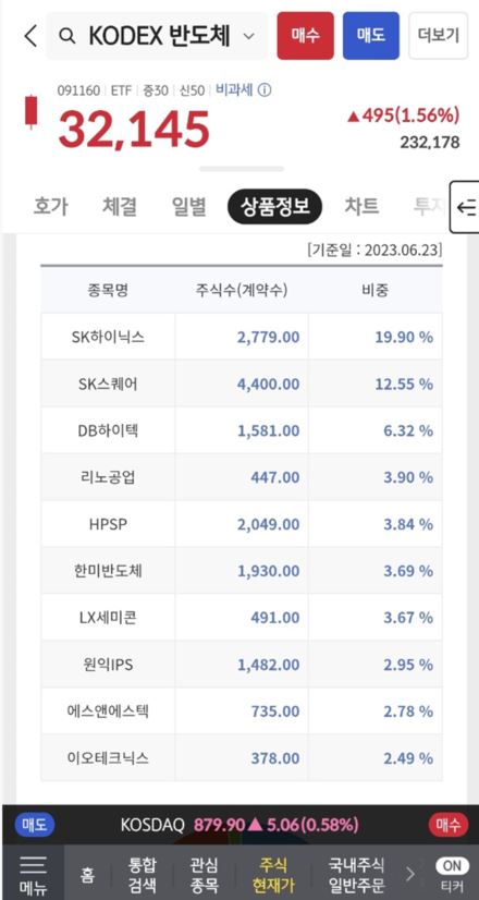 ④ 해당 ETF의 상품정보의 구성종목을을 확인하자.